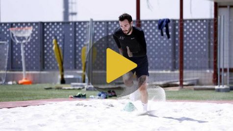 Ejercicios en la arena, como el que compartió la entidad azulgrana en sus redes sociales. En este se le puede ver corriendo y esforzándose en la zona adaptada para ese menester dentro de las instalaciones del club.