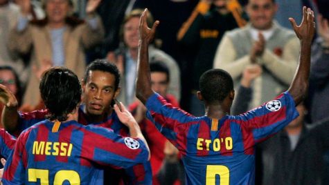 Eto'o construye el mejor tridente de la historia con tres jugadores del Barça
