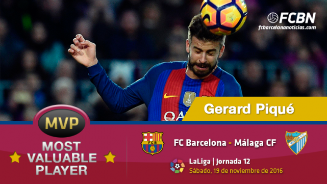 Piqué estuvo perfecto en defensa en el primer tiempo y muy peligroso en ataque en el segundo. Esto le hace ganar el "MVP" de FCBN en este Barça-Málaga y sin que nadie le haga sombra. El central tuvo las ocasiones más claras del partido e incluso le anularon un gol claro.