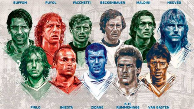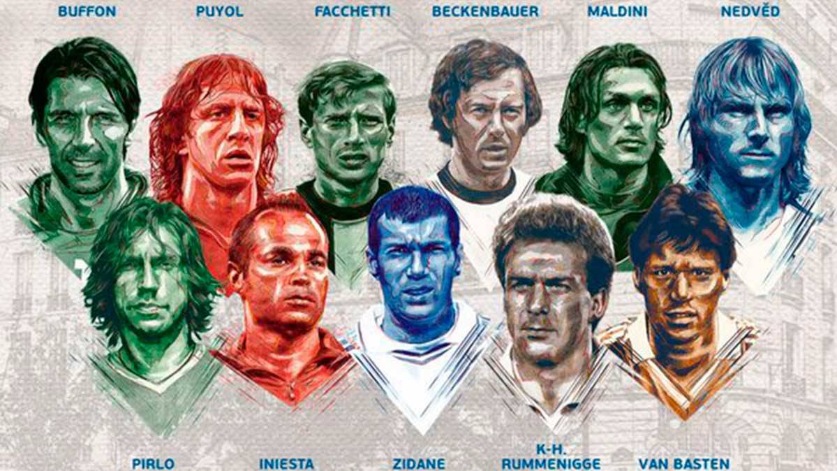 -Buffon, Facchetti, Beckenbauer, Maldini, Nedved, Pirlo, Zidane, Rummenigge y Van Vasten.