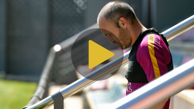 Iniesta realizó ya algunos ejercicios con balón y muy dinámicos, y su reacción tras la sesión deja claro que la evolución de su lesión transcurre positivamente, por lo que no hay que descartarle de cara a la siguiente jornada de Liga Santander frente al Alavés, el sábado en el Camp Nou.