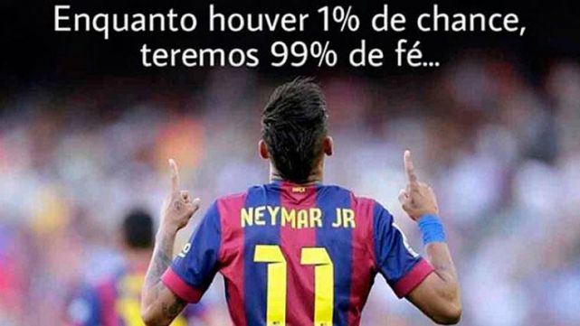 Uno de estos fue un Neymar Júnior que siempre creyó en el equipo. Siempre. Pues viral se hizo su frase poco después de la tormenta que tuvo lugar en Francia. "1% de posibilidades, 99% de fe", escribió el genio en sus perfiles de Twitter e Instagram y también repitió ante los medios.