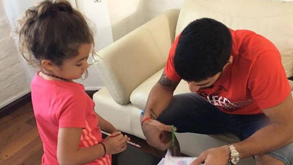 Después de formar parte de la última victoria de Uruguay sobre Ecuador, el "guerrero" Luis Suárez tuvo su merecido descanso junto a su familia. Al nueve se le pudo ver en una tierna estampa junto a su hija haciendo manualidades