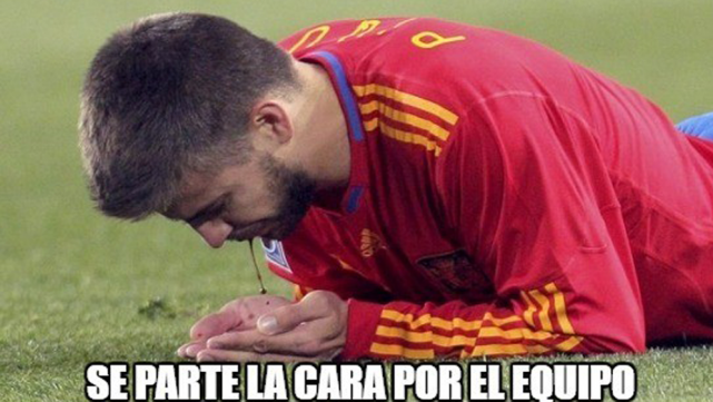 Luego la RFEF demostró que realmente Piqué no lo hizo por eso, y todos los críticos iniciales del jugador quedaron en ridículo. Eso, y las críticas surgidas, han dado pie a hilarantes "memes" que se burlan de la situación y, de paso, recuerdan el gran compromiso que ha mantenido siempre Gerard Piqué con la selección española, llegando a sangrar en algunos encuentros por la camiseta.