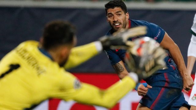 El uruguayo Luis Suárez aún no ha podido estrenarse con el Atlético de Madrid en la UEFA Champions League, al igual que con el Barça le cuesta marcar en la competición