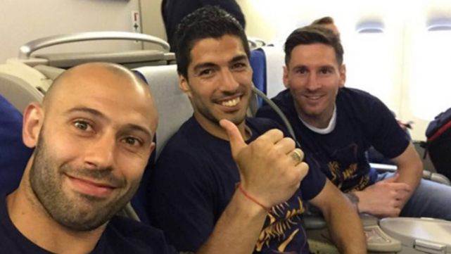 El experimentado defensor del FC Barcelona, Javier Mascherano, publicó a través de las redes sociales un divertido "selfie" con Luis Suárez y Leo Messi, que además de bromear sobre él mismo sirvió para elogiar a sus compañeros