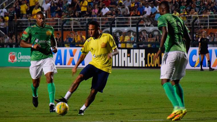 El delantero del FC Barcelona Neymar Júnior se lo pasó en grande en la madrugada de este jueves para el viernes. El genio disputó el partido amistoso benéfico que tenía apalabrado junto a su ídolo Robinho, y acabó goleando con su equipo