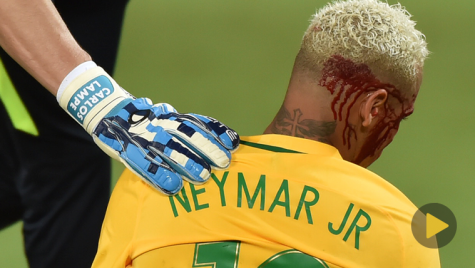 La gran estrella del FC Barcelona y Brasil, Neymar Jr, recibió un codazo cuando intentaba regatear a un jugador contrario, y eso le provocó un corte que empezó a sangrar profundamente. Las asistencias tuvieron que atenderle sobre la hierba