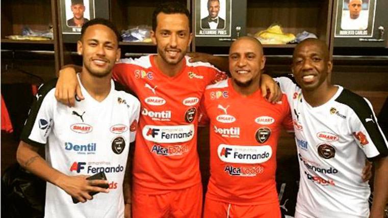 Entre felicitación y felicitación, Neymar Júnior deja tiempo para la disputa de partidos benéficos en estas vacaciones. En el último se le pudo ver con todo un santo y seña del Real Madrid como es el ex futbolista Roberto Carlos para recoger alimentos
