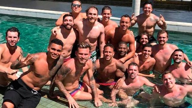 En otra, la más "mediática", Neymar aparece junto a los "tois" y demás amigos en la piscina de su casa. "En la vida sólo se necesita amor y amista... y el resto no importa", escribió.