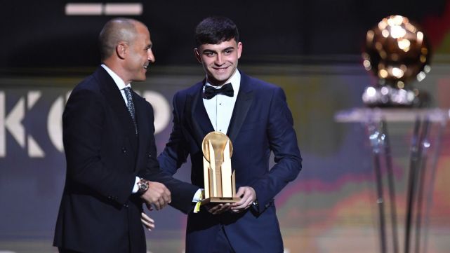 La joya culé que fue ‘blindada’ con una cláusula rescisión de 1.000 millones de euros, recibió el trofeo del defensa italiano Cannavaro. Asimismo, Pedri logró imponerse a Bellimgham, Greenwood, Nuno Mendes y Musala en la disputa por el Trofeo Kopa.