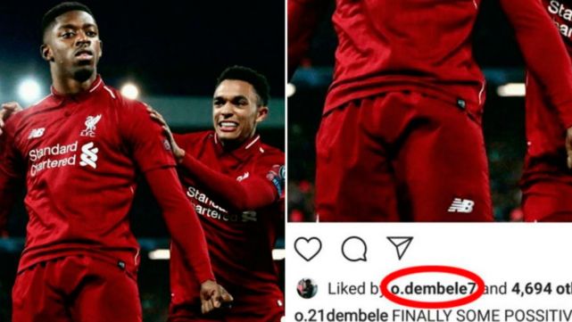 Polémica por un supuesto 'like' de Dembélé a un fotomontaje con el Liverpool