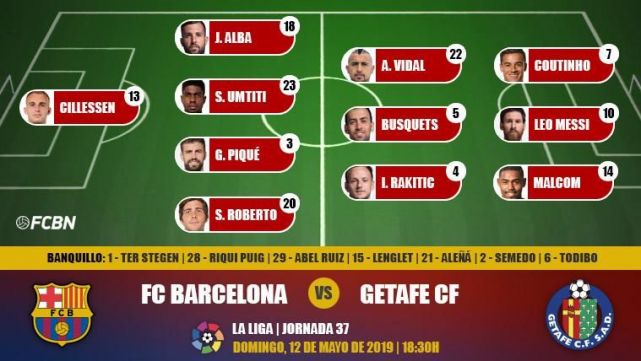 Alineación del FC Barcelona contra el Getafe en el Camp Nou