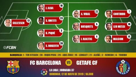 Alineaciones de la J37 de LaLiga: FC Barcelona-Getafe