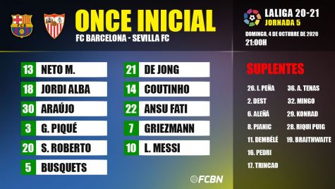Alineaciones del FC Barcelona-Sevilla de LaLiga 2020-21