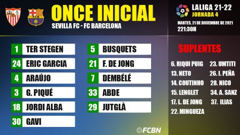 Xavi Hernández ya ha revelado la alineación con la que el FC Barcelona se enfrentará al Sevilla en el Sánchez Pizjuán. Este es el XI del Barça: Ter Stegen; Araújo, Piqué, Lenglet, Alba; Sergio, Frenkie de Jong, Gavi; Dembélé, Jutglà y Abde