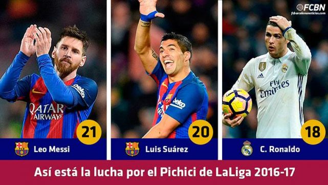 Así está la batalla por el "Pichichi" de LaLiga 2016-2017