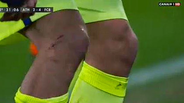 Así quedó la rodilla de Suárez tras la entrada de Etxeita