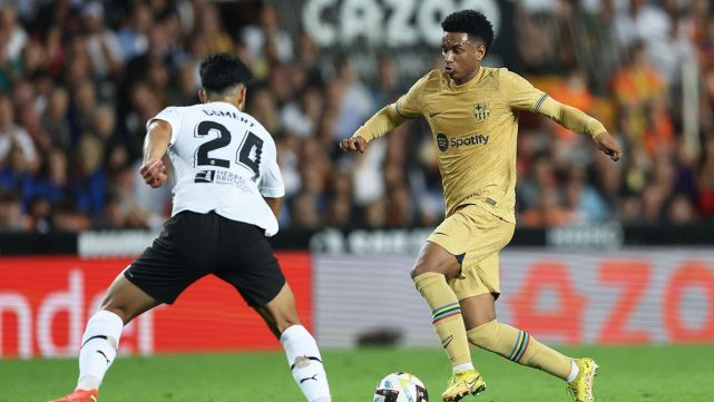 El canterano ha logrado hacerse con la titularidad gracias al enorme despliegue físico que exhibe en cada partido. A su enorme velocidad se suma la disciplina táctica para saber cuándo proyectarse en ataque y cómo cubrir espacios en una zaga remendada por las bajas. En Mestalla intentó ayudar a Ousmane Dembélé con buenos relevos en tres cuartos de cancha en la primera parte, algo que no sucedió en el complemento tras el ingreso de Raphinha. Sin embargo, el Barça logró sostenerse el cero en el tramo final sin apuros, en gran medida gracias a su buena labor.