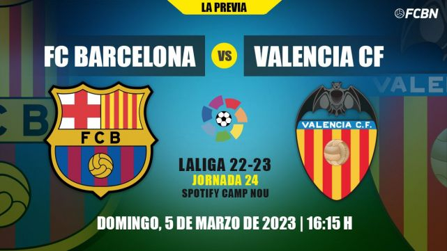 Para la visita del Valencia al Camp Nou, el Barça tiene hasta cinco bajas en su plantilla. Son bien conocidas las ausencias de Ousmane Dembélé, Pedri González y Robert Lewandowski, quienes continúan en la enfermería recuperándose de sus respectivas dolencias físicas. Al ariete polaco se le espera para el próximo partido, contra el Athletic Club en San Mamés, mientras que Dembélé y Pedri podrían llegar a tiempo, pero no es completamente seguro. Sí estarán al 100% para el Clásico del 19 de marzo.