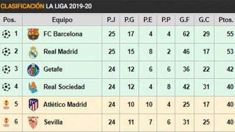 Así está la clasificación de LaLiga: El Barça, nuevo líder tras el pinchazo del Madrid