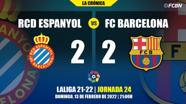 Ficha técnica del partido: RCD Espanyol 2-2 FC Barcelona