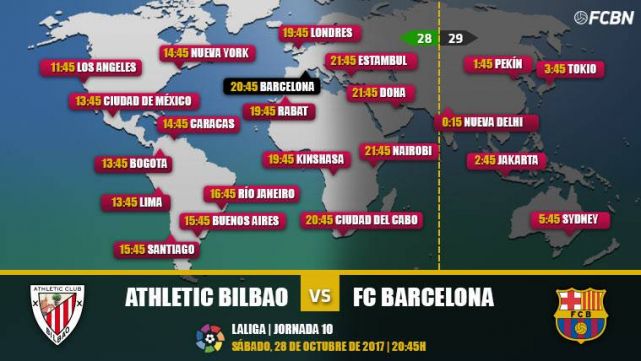 ¿Cuándo y dónde ver el Athletic Bilbao-FC Barcelona? Repasamos la guía internacional con los horarios y los canales de televisión que retransmiten en directo y online el partido del Barça en la jornada 10 de La Liga 2017-2018