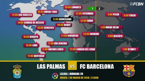 U.D. Las Palmas y Fútbol Club Barcelona se enfrentan este jueves 1 de marzo, a las 21:00 horas, en el Estadio de Gran Canaria. El encuentro corresponde a la 26ª jornada de LaLiga Santander 2017-2018, jornada intersemanal, y mide al Barça, líder del campeonato con 65 puntos, contra Las Palmas, décimo octavo clasificado con 19 puntos. VER CLASIFICACIÓN LALIGA SANTANDER