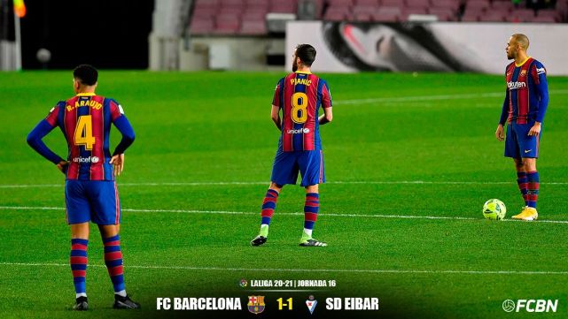 Seamos realistas. Si el Barça sigue a este ritmo, le costará horrores incluso clasificarse para la próxima edición de la UEFA Champions League. Con las bajas de Leo Messi, Jordi Alba, Sergi Roberto, Ansu Fati y Gerard Piqué, el FC Barcelona de Ronald Koeman no fue capaz este martes de dar continuidad a las buenas sensaciones que había acumulado con la goleada ante el Valladolid (0-3), y empató de forma sorprendente ante el Eibar en el Camp Nou (1-1).