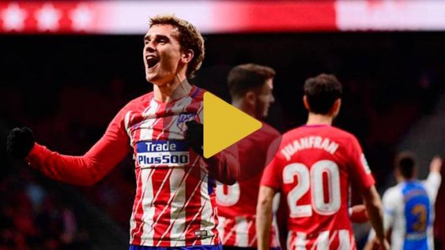 El segundo tanto del '7' del Atlético de Madrid fue una auténtica obra de arte y llegó en el minuto 35, al más puro estilo Leo Messi. El francés marcó de falta directa con un potente y ajustado disparo al palo del portero, que no pudo atajar el balón debido a la potencia del envío.