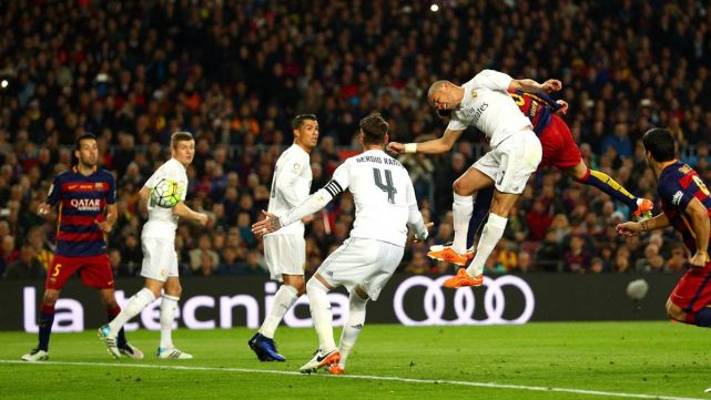 La vida, sin embargo, da muchas vueltas, y cuando mejor estaba el FC Barcelona en el partido llegó el gol del empate del Real Madrid. Una jugada magistral de Marcelo, que se internó en el centro del ataque y desequilibró a la defensa culé, propició el gol de tijera de Karim Benzema, después de que Kroos le diera un pase raso desde la banda derecha que elevó ligeramente un defensor azulgrana. Tablas en el partido, inmerecidas por la abundancia de oportunidades de gol del Barça y, sobre todo, el pésimo arbitraje de Hernández Hernández. Con el tanto del empate, el encuentro se calmó a nivel de intensidad durante algunos minutos, con los dos equipos tanteándose de nuevo en lo que pareció un "reset" del Clásico. Pese a todo, el FC Barcelona continuó disponiendo del control del balón, buscando por todos los lugares un resquicio en el muro defensivo del Real Madrid, que regresó al planteamiento inicial de esperar para hacer daño al contraataque.