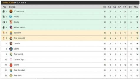 De este modo, el FC Barcelona ha conseguido, en esta décima jornada, mantener el liderato. Un liderato que ya recuperó el pasado fin de semana derrotando al Sevilla en el Camp Nou, mismo escenario del Clásico, y que ha podido proteger de forma satisfactoria y pese a la baja de Lionel Messi, lesionado antes del duelo contra los hispalenses.