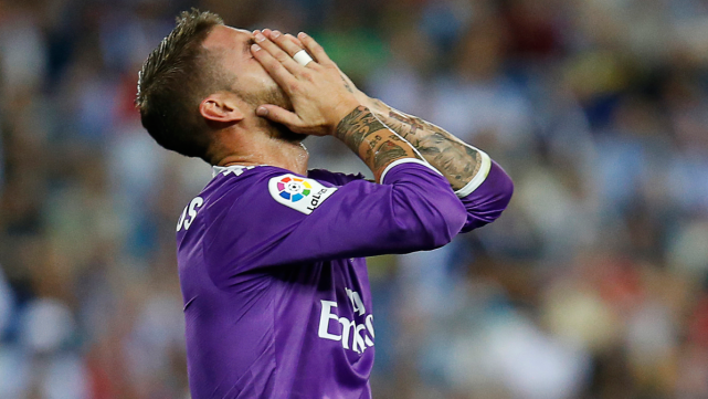 Sergio Ramos, llevándose las manos a la cabeza en una acción del partido