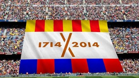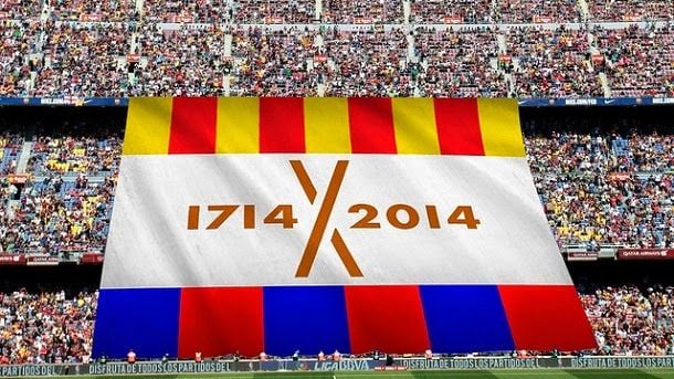 El Camp Nou ha vivirdo un momento muy especial justo antes del inicio del partido. Para conmemorar el Tricentenari se ha desplegado en el lateral del Camp Nou una bandera gigante (45 x 46 metros) con los colores azulgrana y los de la 'senyera' y con el símbolo de la conmemoración. El acto hacía alusión a la caída de Barcelona en la guerra de Sucesión hace 300 años, y que está teniendo un gran protagonismo político en Catalunya. El Barça, un año más, se sumó el jueves en la ofrenda floral de la Diada, pero se había mantenido alejado de posiciones más comprometidas en cuanto al proceso.