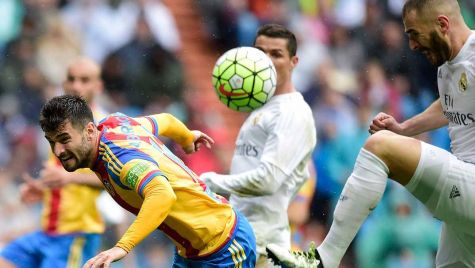 El Real Madrid se impuso injustamente al Valencia CF y se queda solo a la caza del FC Barcelona tras la derrota del Atlético de Madrid frente al Levante UD. Los blancos vencieron jugando a la contra, con dos goles de Cristiano Ronaldo y otro de Karim Benzema, en claro fuera de juego. El Valencia puso el fútbol y el miedo en el cuerpo de la afición con los tantos de Rodrigo y André Gomes.