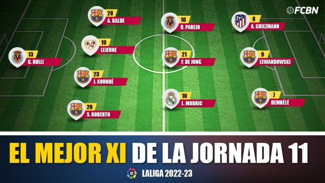 - XI ideal: Rulli; S. Roberto; Koundé, Lejeune, Balde; De Jong, Modric, Parejo; Dembélé, Lewandowski y Griezmann.