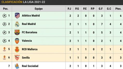CONSULTA LA CLASIFICACIÓN DE LALIGA 2021-22