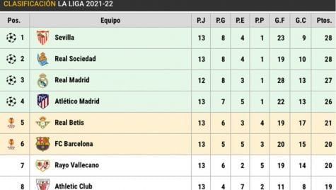 CONSULTA LA CLASIFICACIÓN DE LALIGA SANTANDER 2021-22