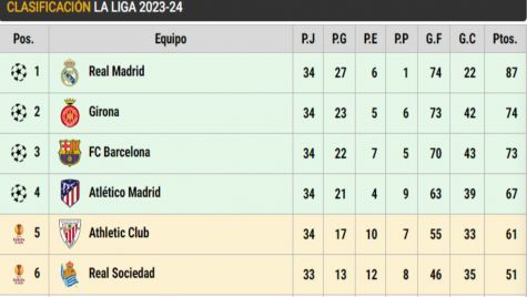 Así pues, los madridistas se quedan con el campeonato. A falta de cuatro partidos, suman 87 puntos de 102 posibles y sumando una única derrota en lo que va de curso. Lo hacen con una inmensa ventaja sobre la segunda plaza, ocupada por un Girona histórico en su segunda campaña en Primera División. Tienen 74 puntos y ya han certificado su presencia en la próxima Champions League, desplazando al Barça a la tercera plaza com 73 unidades.