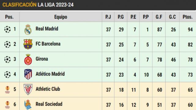 CONSULTA AQUÍ LA CLASIFICACIÓN COMPLETA DE LALIGA EA SPORTS 2023/2024