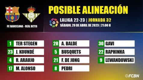 FC Barcelona-Real Betis: Posibles alineaciones de la jornada 32 de la Liga