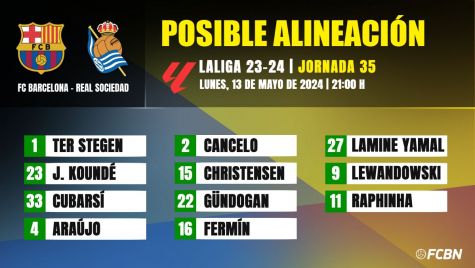 FC Barcelona-Real Sociedad: Las posibles alineaciones de la jornada 35 de LaLiga EA SPORTS