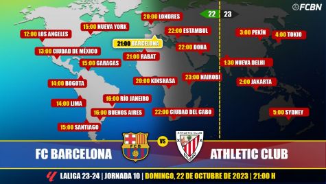 ¿Cuándo y dónde ver el FC Barcelona-Athletic Club? Guía Internacional con los horarios y los canales de TV que retransmiten en directo y online este partido de la jornada 10 de LaLiga EA Sports 2023/2024