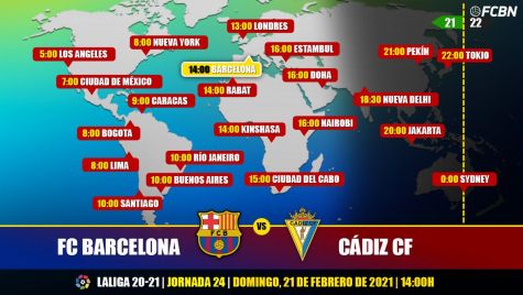 ¿Cuándo y dónde ver el FC Barcelona-Cádiz? Guía Internacional con los horarios y los canales de TV que retransmiten en directo y online el partido de la jornada 24 de LaLiga Santander 2020-21