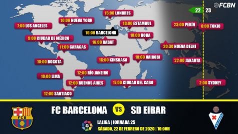 En Sudamérica, Centroamérica, Caribe, México y Brasil, el partido Barcelona contra Eibar podrá verse en vivo a través de los siguientes horarios y canales de televisión: DIRECTV Sports, SKY Sports, Tigo Sports y ESPN Brasil.
