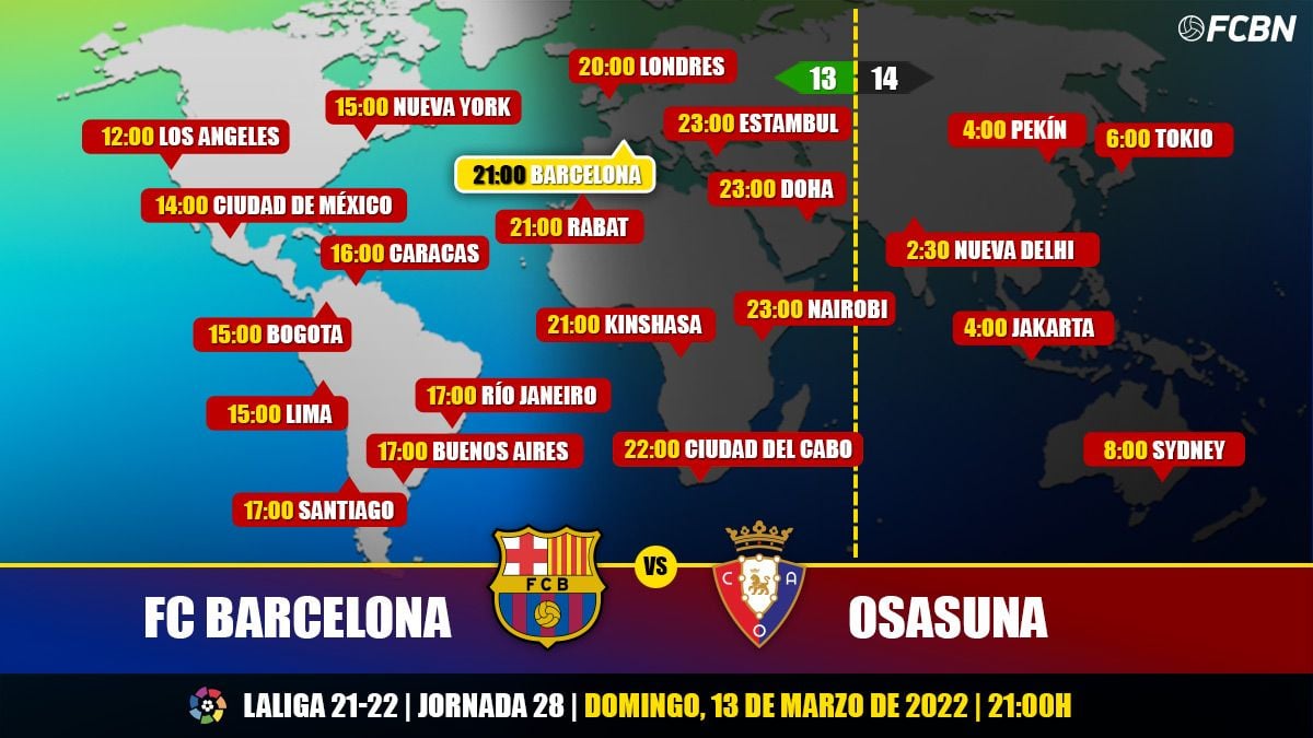 En España, el Barça-Osasuna será televisado en directo el domingo 13 de marzo, a las 21:00 horas por el canal Movistar LaLiga, Movistar LaLiga 1, Movistar LaLiga UHD y LaLiga TV Bar. Además, también se verá a través de los operadores Movistar y Orange, que ofrecerán el partido en Internet y con acceso desde tu móvil, tablet, ordenador o Smart TV.