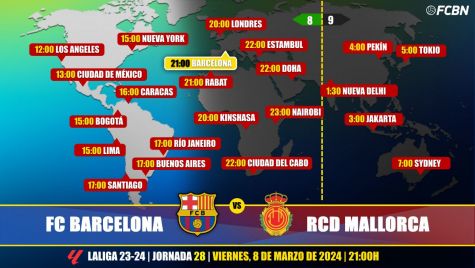 ¿Cuándo y dónde ver el FC Barcelona-RCD Mallorca? Guía Internacional con los horarios y los canales de TV que retransmiten en directo y online este partido de la jornada 28 de LaLiga EA Sports 2023/2024
