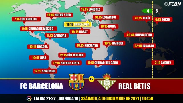 ¿Cuándo y dónde ver el FC Barcelona-Real Betis? Guía Internacional con los horarios y los canales de TV que retransmiten en directo y online el partido de la jornada 16 de LaLiga Santander 2021-2022