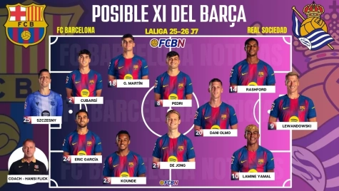 En ataque, Lamine Yamal y Marcus Rashford completarían el ataque azulgrana junto a Robert Lewandowski. El '10' se perdió las últimas tres jornadas por lesión y, ante la baja de Raphinha, apunta al XI contra los donostiarras. Roony Bardghji también tiene buenas opciones de volver a la alineación, mientras Ferran Torres sería suplente por primera vez en el torneo.