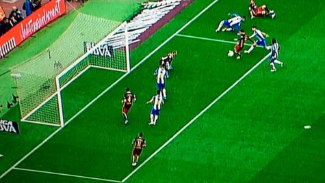 El árbitro del Barça-Espanyol anuló un gol legal del centrocampista Ivan Rakitic por un fuera de juego que no existía. Un defensor blanquiazul tumbado en el suelo dejaba al Rakitic en situación legal, cosa que no vio el colegiado ni el linier